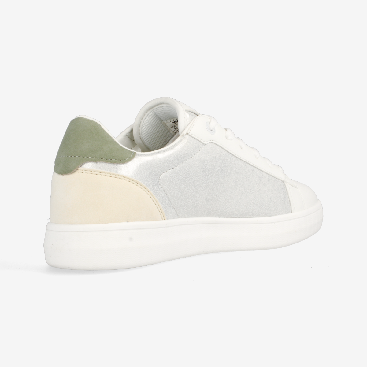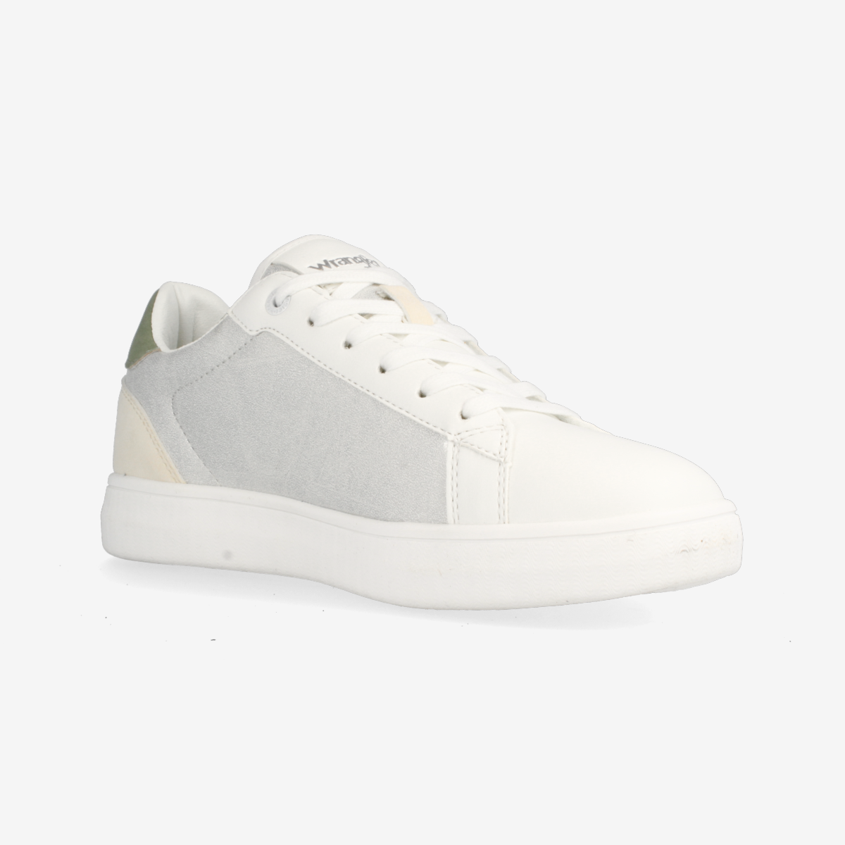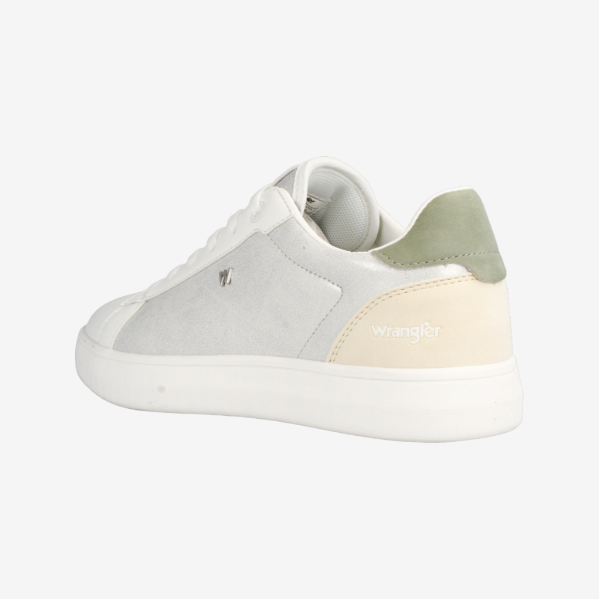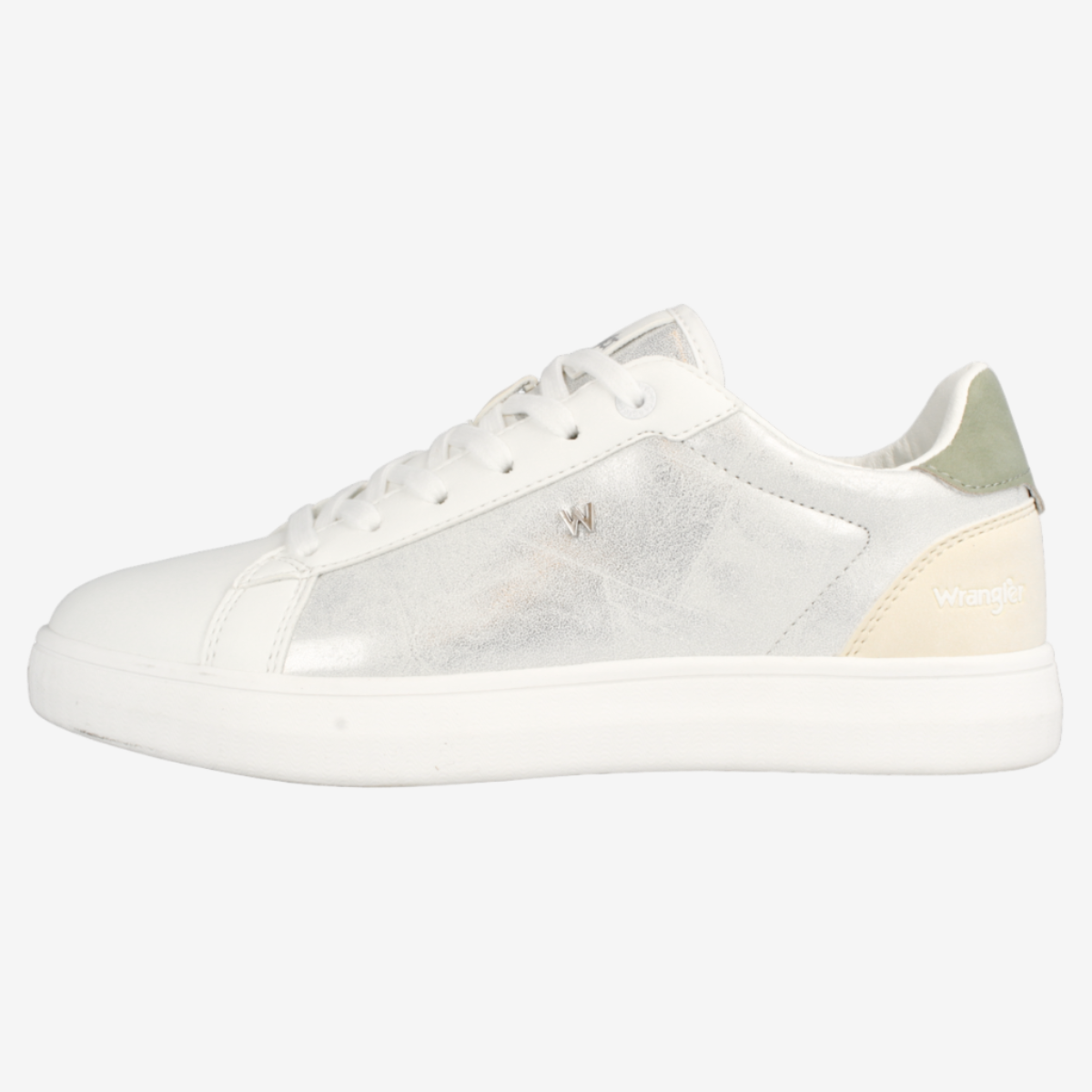 Shop Wrangler Bea Women Low. Bright White Silver. Stylish sneakers with metallic accents, cushioned comfort, and durable sole for daily wear.