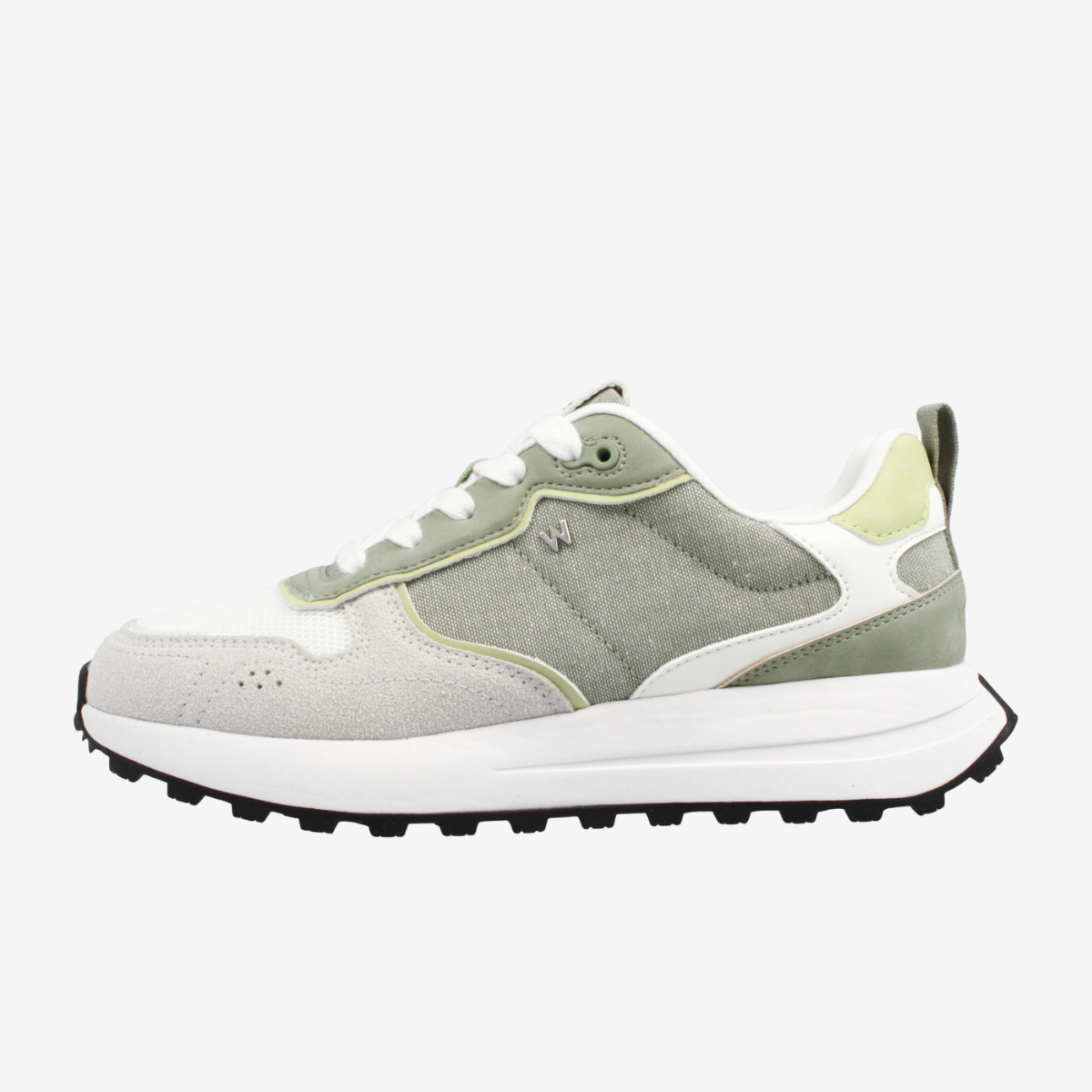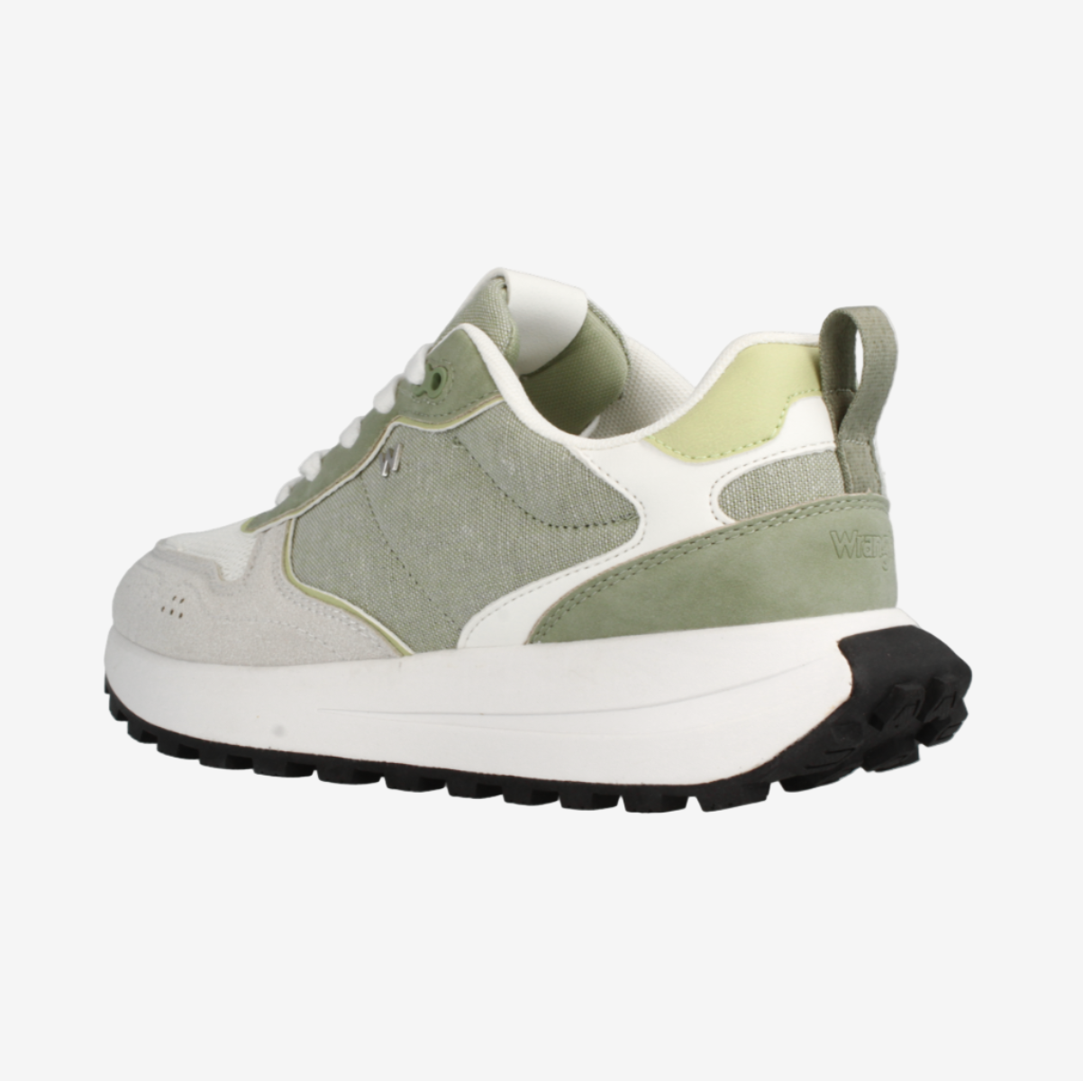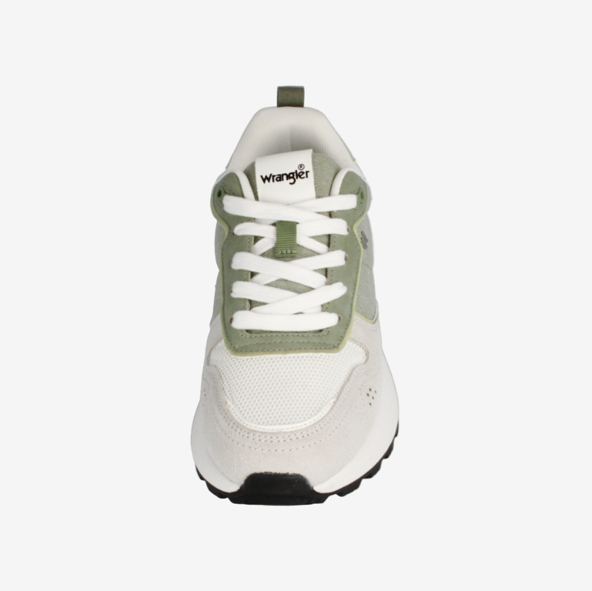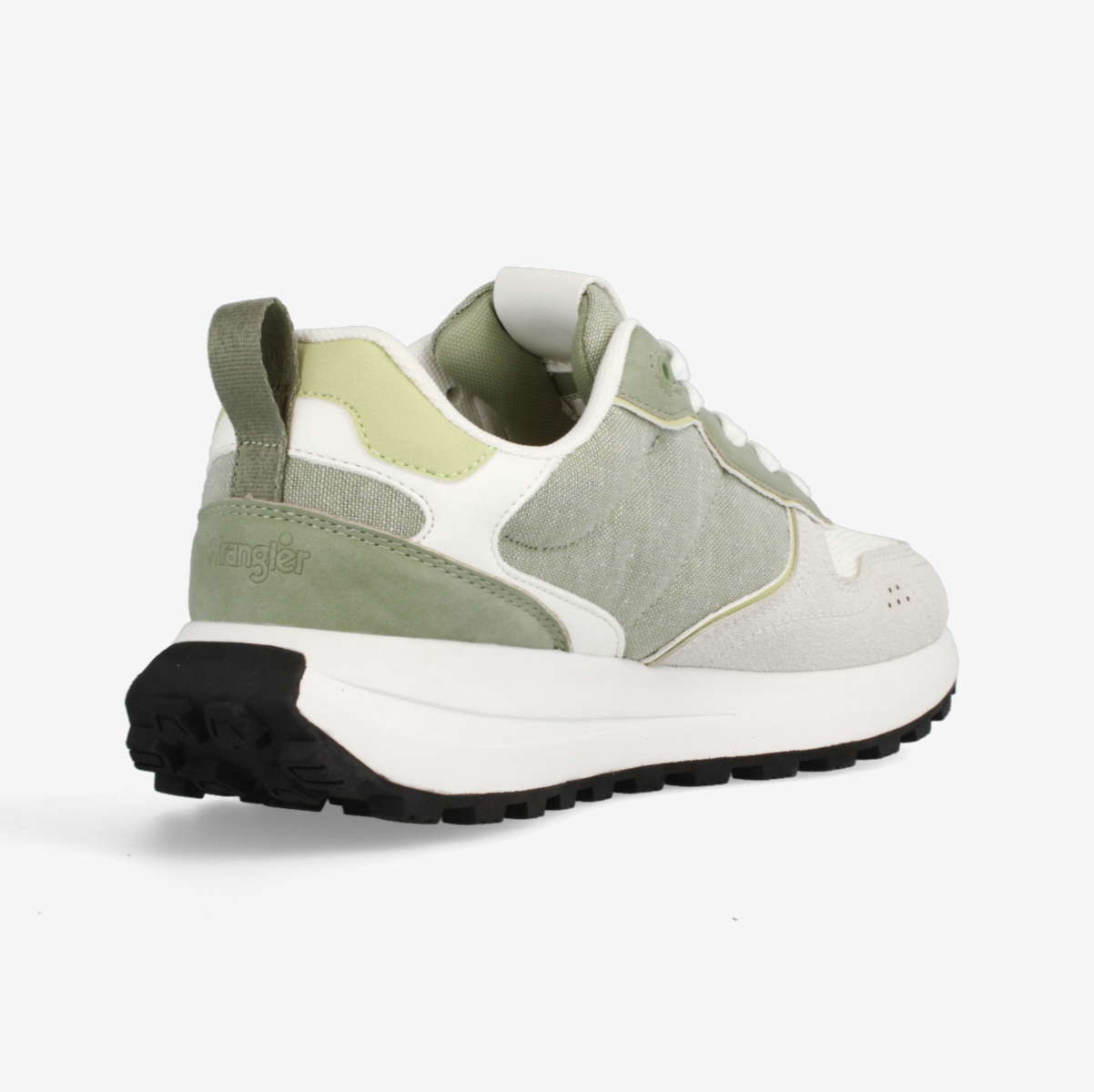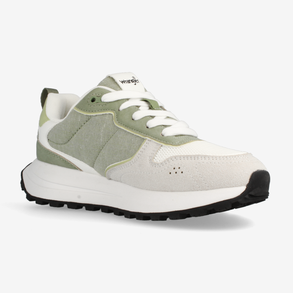 Shop Wrangler Bonnie Women Low. Bright White Tea. A fresh sneaker with tea green accents, suede-look fabric overlays, and cushioned comfort for everyday style.