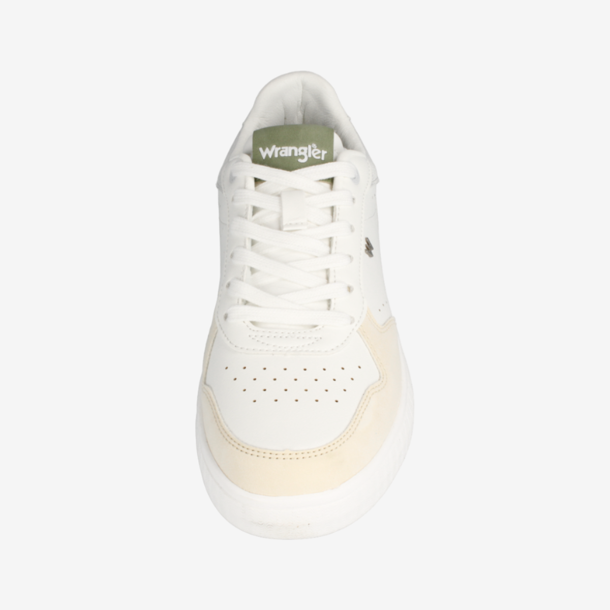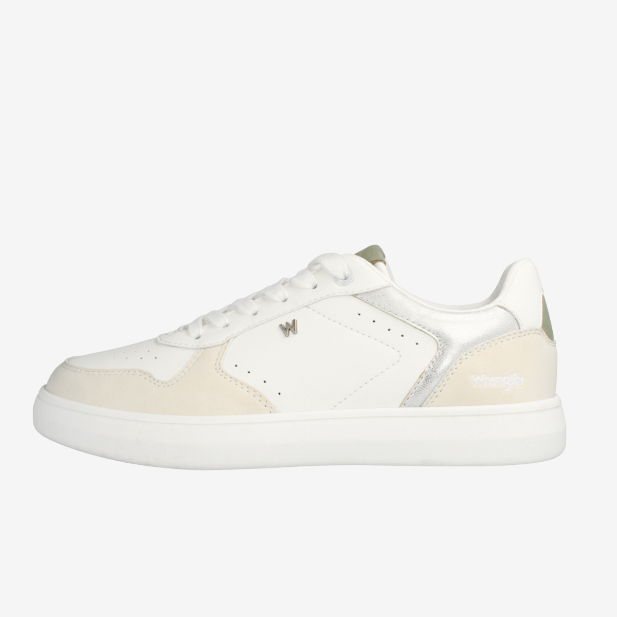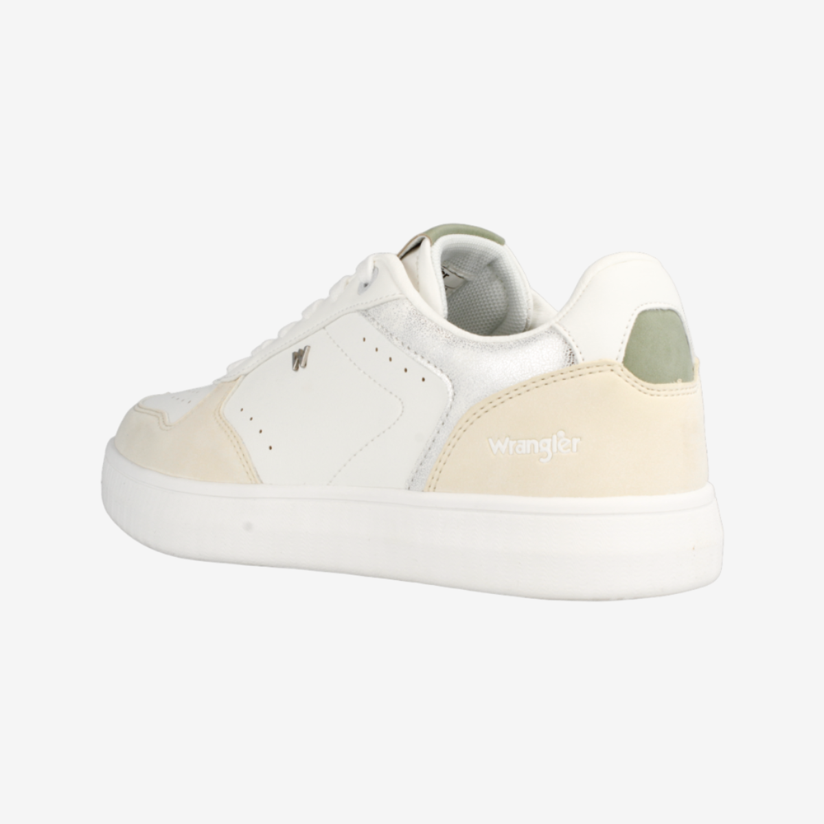 Shop Wrangler Laurel Women Low. Bright White. A fresh everyday sneaker with suede-look fabric overlays, metallic detail, and cushioned comfort for versatile styling.